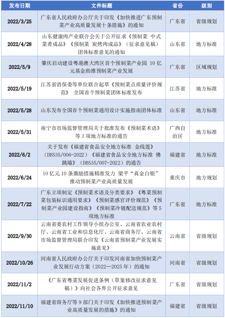 疫情布景下,预制菜财产相关的尺度规范也连续出台。